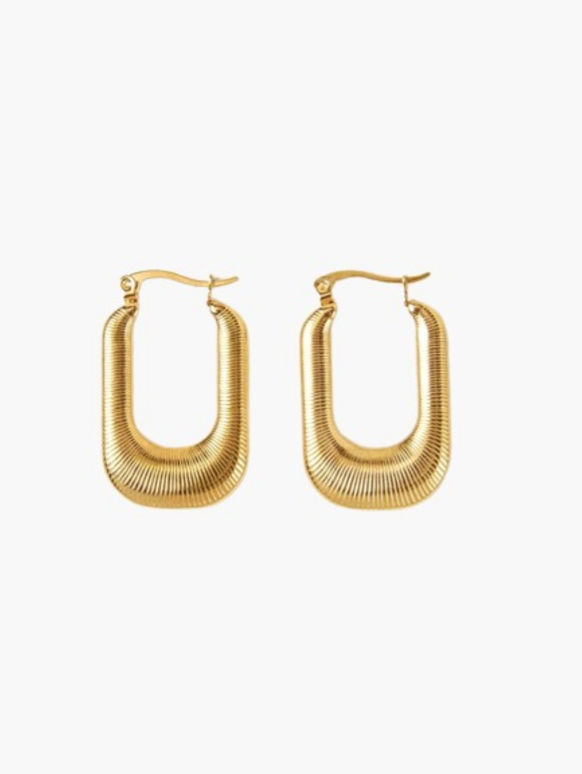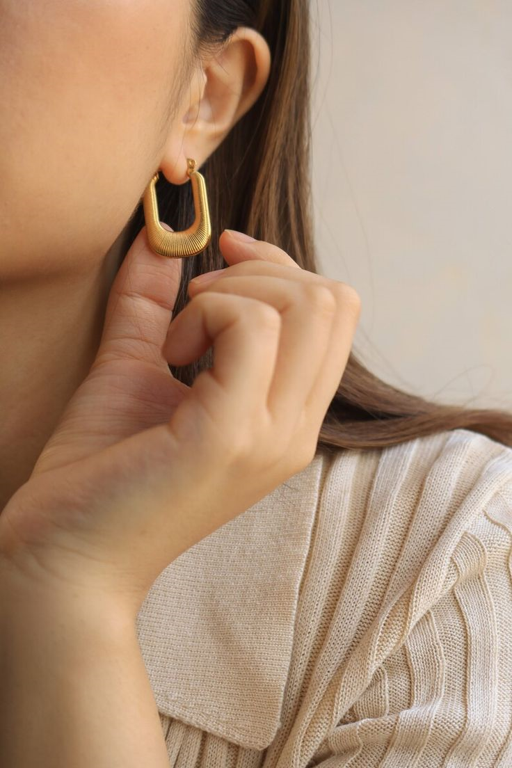 Our sleek gold hoop featuring a chic black charm, perfect for any occasion.