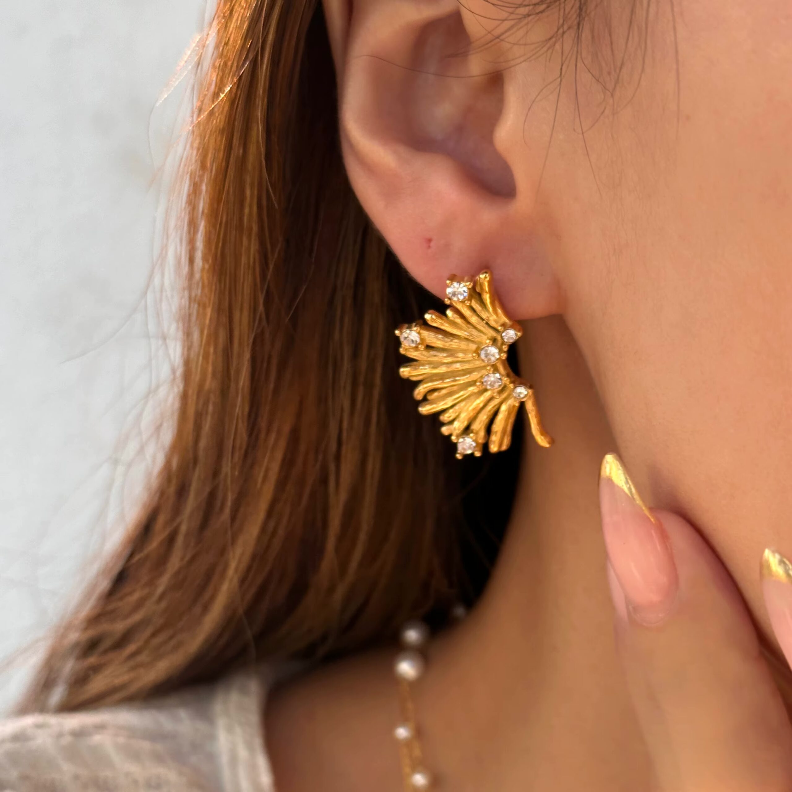Textured earrings with an elegant finish, designed to add depth, shine, and a refined touch to any look.