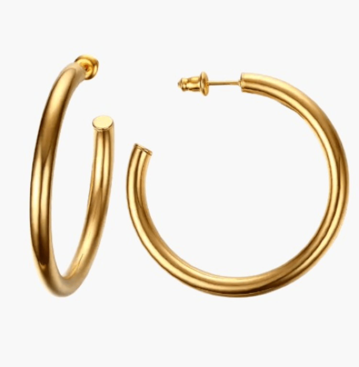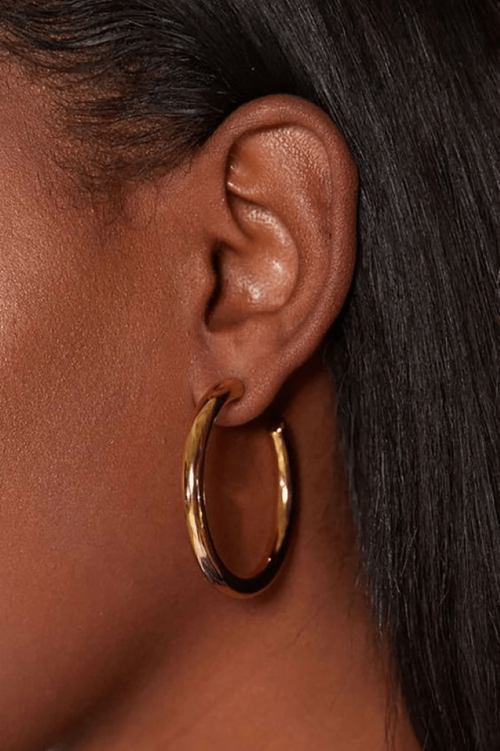 Introducing our timeless Classic Large Hoop, meticulously crafted in 18K gold-plated stainless steel.